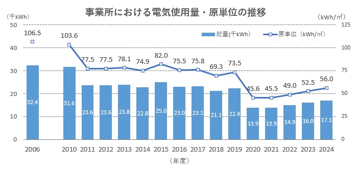 - 当社では、事業所の電気使用量のモニタリング等を通じてエネルギー消費の削減に取り組んできました。